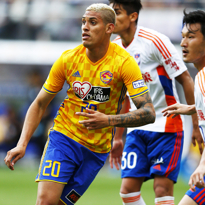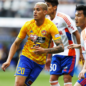 今シーズン、新たなエースストライカーとしての期待をかけられ、仙台に新加入したクリスラン。来日直後の負傷で出遅れたが、周囲の選手との連係も噛み合い、その潜在能力をいかんなく発揮し始めている。