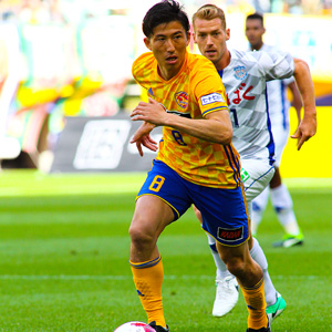 攻撃のタレントが豊富なのはC大阪の伝統だ。チームの顔はFW8柿谷曜一朗。ここまで2ゴールにとどまっているが、足下の技術が高く豊富な攻撃のアイデアを持つ。FW9杉本健勇は恵まれた体格と柔らかいボールタッチを生かし、ここまでチーム最多の6ゴールを挙げている。もう一人、6ゴールを挙げているのはトップ下のMF24山村和也。元々はセンターバック・ボランチだったが、シュート精度の高さとボールキープ力が買われて攻撃の選手に転向し、大きく花開いた。FC東京から移籍加入のMF16水沼宏太のドリブル突破も脅威だ。そして日本代表のボランチ、MF10山口螢は攻守にハードワークし、強力な攻撃陣へ精度の高いパスを供給する。