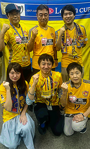 【 前列左から 】 豊福木綿子さん「タイトル目指してがんばってください!!」 阿部彰さん「熱い試合をお願い!!」 千葉靜子さん「ユニに輝く星がほしい!!」