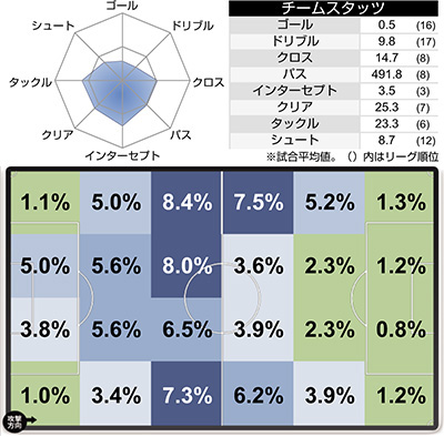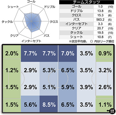 | 1 | 神戸 | 15(6) | 5 | 0 | 1 | 5 |